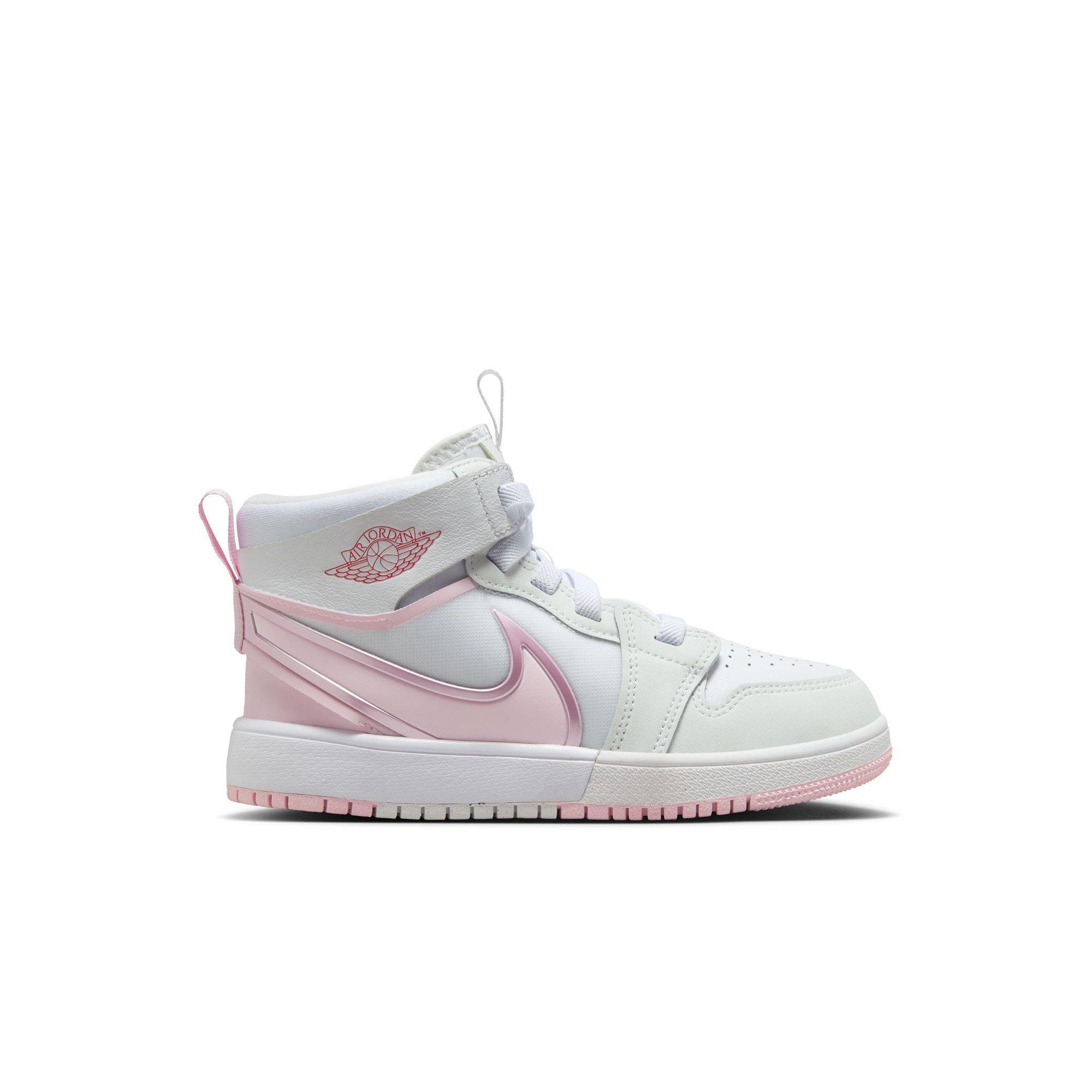 Jordan 1 Mid RM EasyOn Preschool Girls' "White/Pink Foam/Fire Red" Shoe