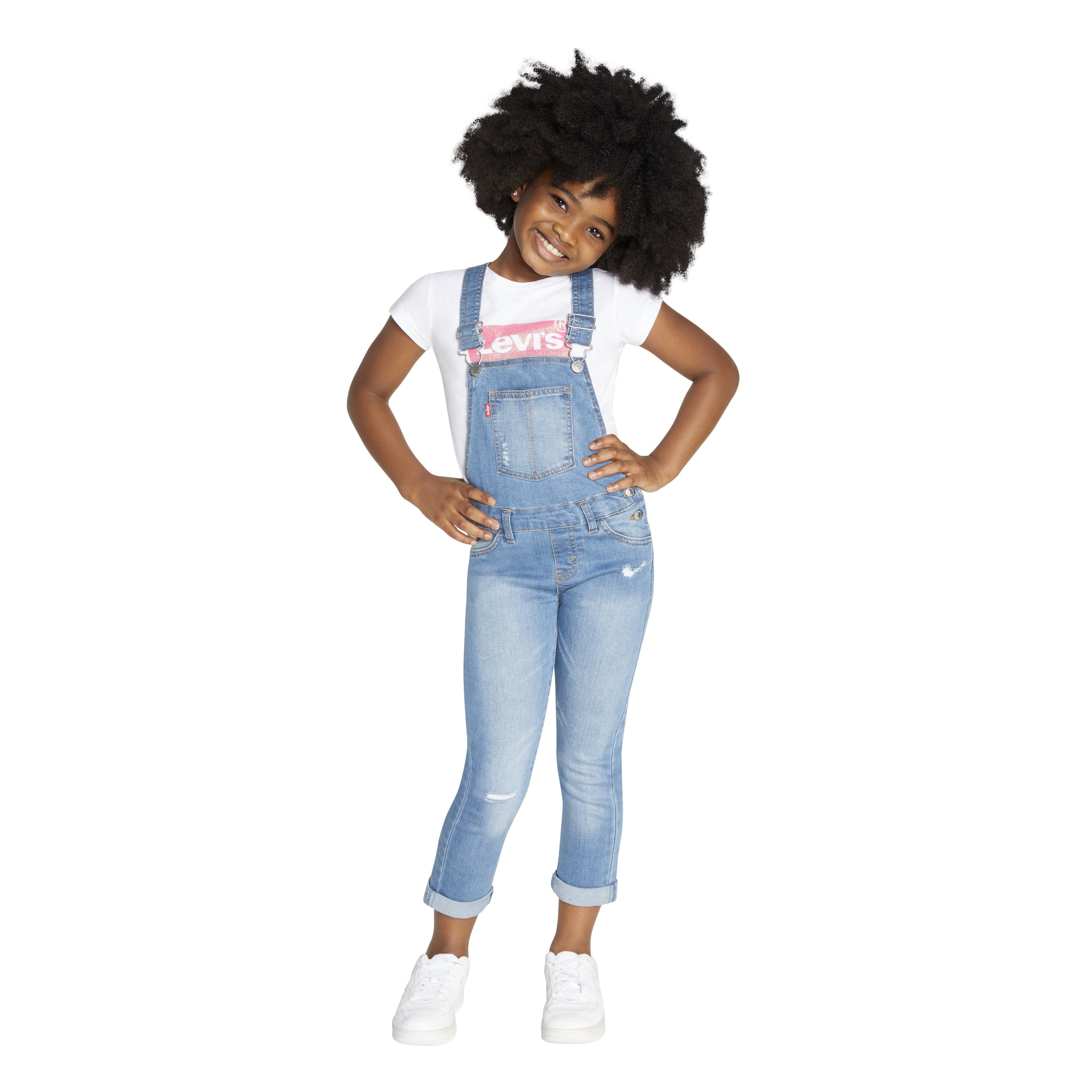 Levi's Girlfriend Fit Little Girls' Light Blue Wash Denim Overalls