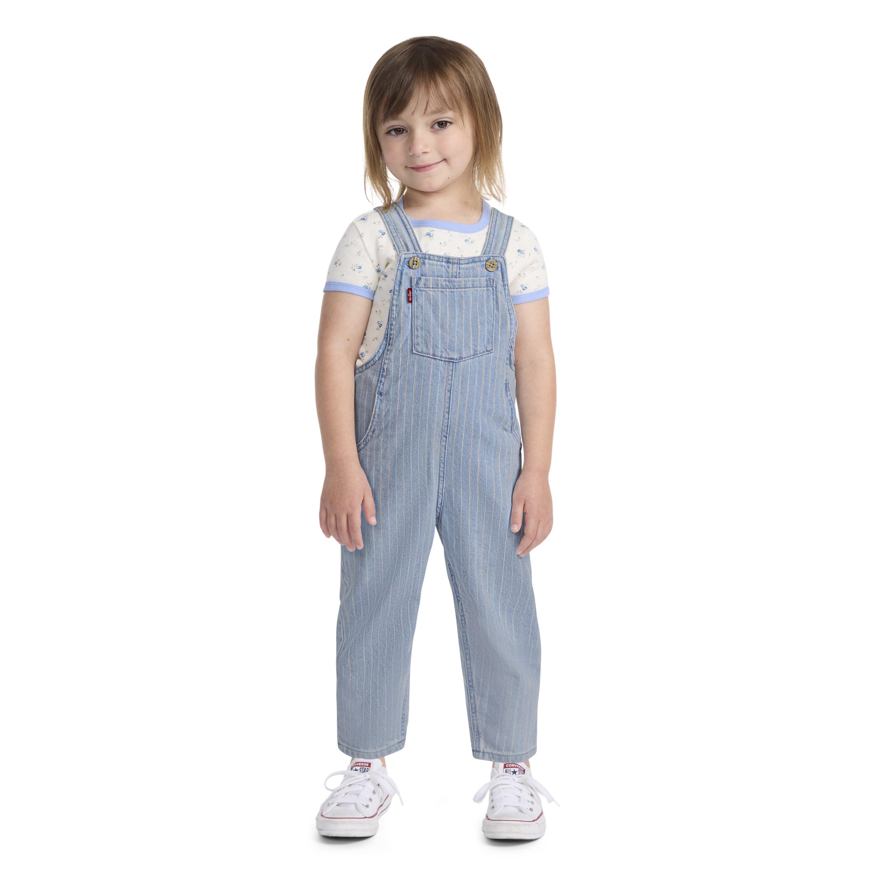 Levi's Rainbow Stripe Toddler Girls' Light Wash Denim Overalls